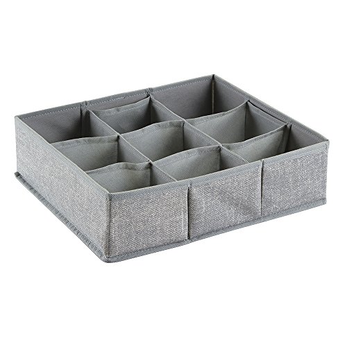 mDesign Fabric Desk Drawer Storage Organizer for Office Supplies, Tape, Sticky Notes, Push Pins, Notepads - 9 Compartments, Large, Gray