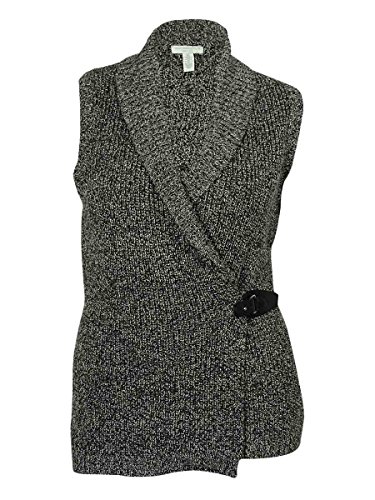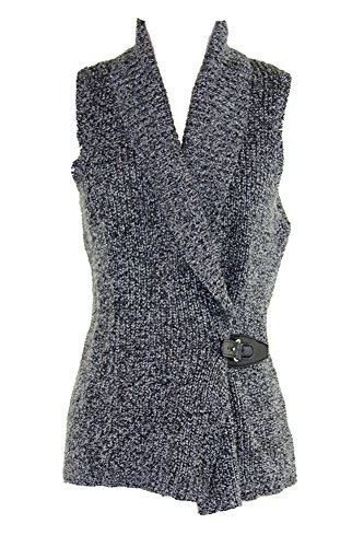 Product DescriptionThis feminine metallic vest-sweater features marled material and a vest/cardigan-style.0