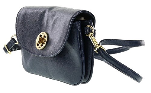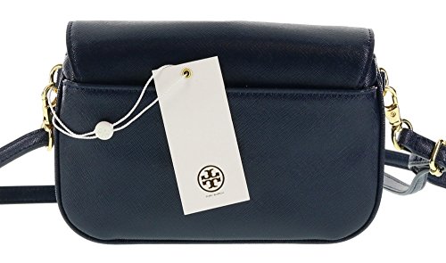 - Feature : Tory Burch glazed saffiano finished leather purse with polished golden tone hardware / Lined interior divided into two sections with a card slot in the back compartment / Flap top closure with iconic Stacked T logo turn-lock clasp and open slip pocket on the back / Single, adjustable, and removable cross-body strap with a drop of approx. 22.5 inches / Approx. dimensions: 7 in L x 4.5 in H x 1.5 in W