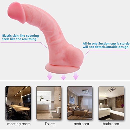 Our 8 inch realistic d-ildo feels like what you know and love, except it's 8 inches. Features a sturdy suction cup at the base for hands free fun, so stick it to any flat surface, such as a shower wall or window (if you're into that kind of thing). Made with medical-grade, non-porous silicone (and, as always, is phthalate free). It's so safe, you can eat off of it. It's odorless, safe to use, and easy to clean.