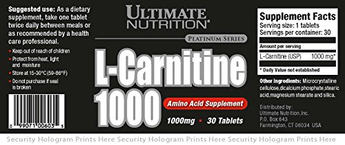 -. Binding : Health and Beauty -. Brand : Ultimate Nutrition -. Feature : L-carnitine is a vitamin-like molecule that's main function is to stimulate the breakdown of fats. / Carnitine is the critical player for the transport of fatty acids into mitochondria. Mitochondria are the powerhouses in the cell that produce the energy your body needs to function properly. -. IsAdultProduct : 0 -. Label : Ultimate Nutrition -. Manufacturer : Ultimate Nutrition -. PackageQuantity : 1 -. ProductGroup : Health and Beauty -. ProductTypeName : HEALTH_PERSONAL_CARE -. Publisher : Ultimate Nutrition -. Studio : Ultimate Nutrition -. Title : Ultimate Nutrition L-Carnitine