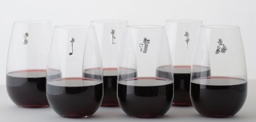 -. Feature : Country Club Collection - Golf Charms / golf ball, tee, putter, golf bag, flag hole, and golf cart / collection of six magnetic cocktail charms / works on all drinkware, glass and plastic / identifies stemless wine glasses at a party
