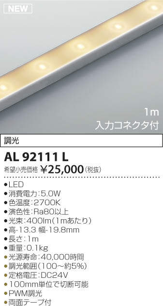 ●光束:400 lm(1mあたり)