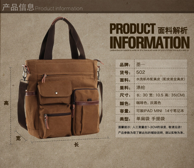 墨一男士商务手提包休闲男包 单肩包斜挎包笔记本电脑包潮男背包