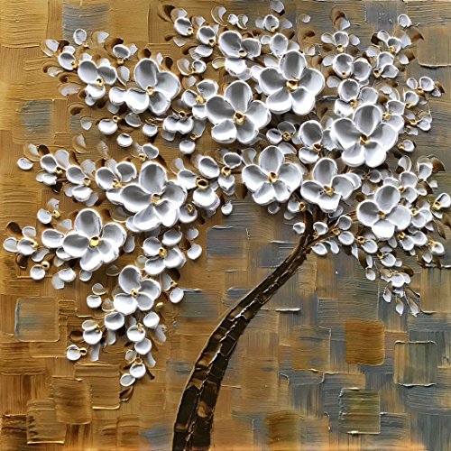 Kate Art - 100% Hand Painted Oil Painting Wall Art on Canvas Ready to Hang Pictures Hand-painted Blooming Colorful Flowers Tree Paintings Palette Knife Texture Paintings Size - 24 x 24inch x 1PC (60 x 60cm x 1PC)