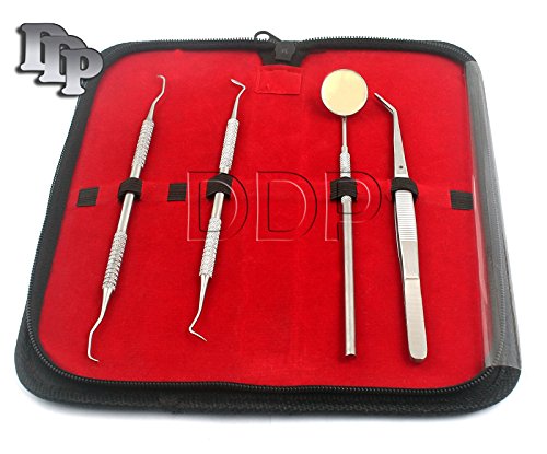 Product DescriptionPROFESSIONAL GRADE DENTAL TOOLS KIT OF 4 - INCLUDES DENTAL PICK, DENTAL SICKLE, DENTAL TWEEZER, AND MOUTH MIRROR - DENTAL HYGEINE KIT - BY DDP0