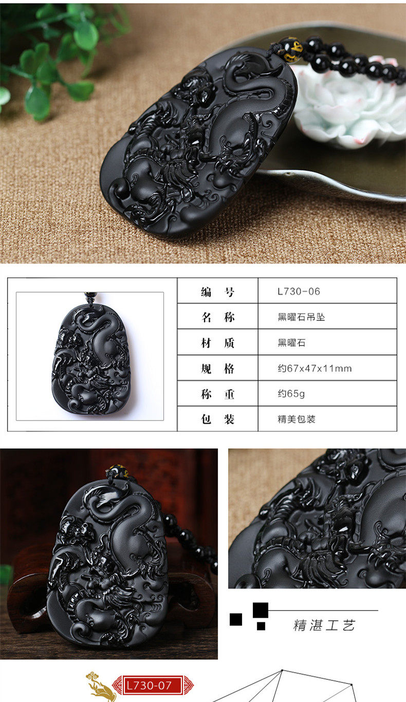 开光属羊人的吉祥物【祥灵安阁黑龙迎禄】黑曜石吊坠护身符