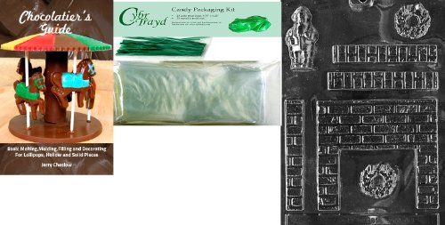 Cybrtrayd Fireplace Chocolate Mold with Chocolatier's Bundle of 25 Cello Bags, 25 Green Twist Ties and Chocolatier's Guide