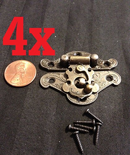 4x Mini Dollhouse Antique Bronze Wood Box Latch Sets Case Lock Hinge Small B24