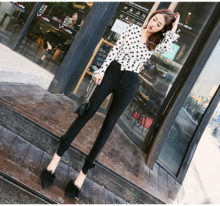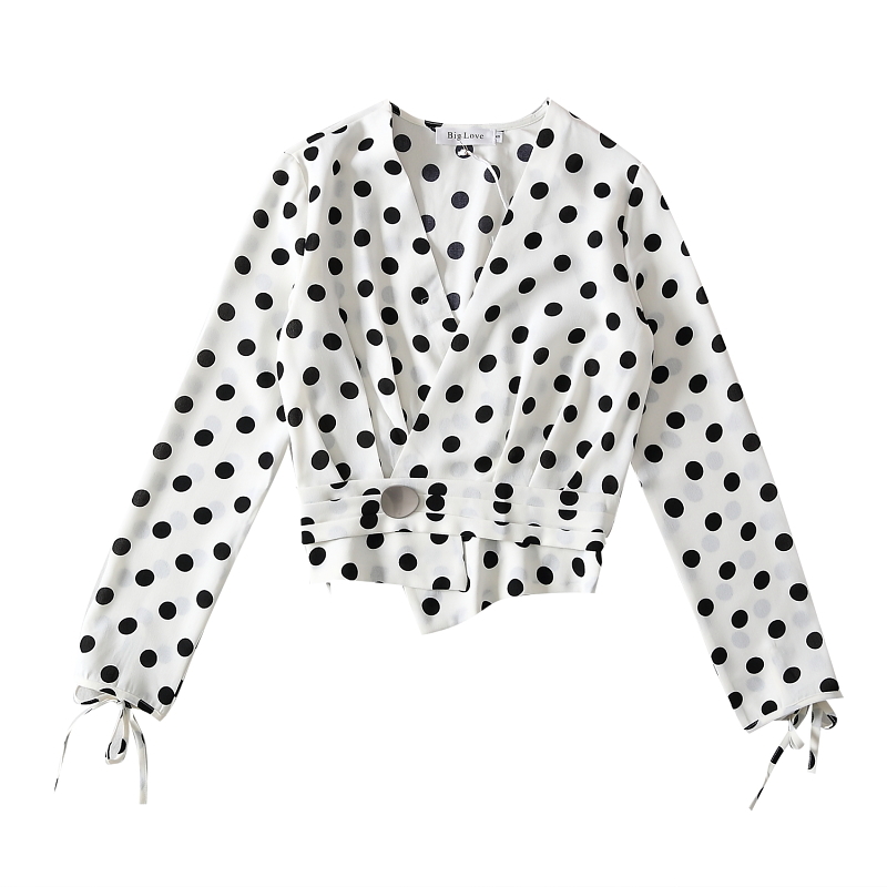 モノトーンのドット柄と袖口のリボンが程よい甘さを演出する大人女子にぴったりな1枚♪