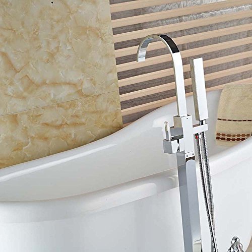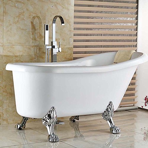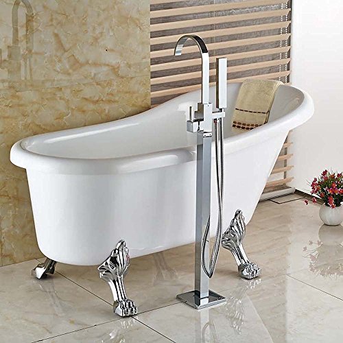 Votamuta Chrome Floor Mounted Clawfoot Bath Tub Filler Faucet Handshower Free Standing Single Handle Shower Mixer Tap