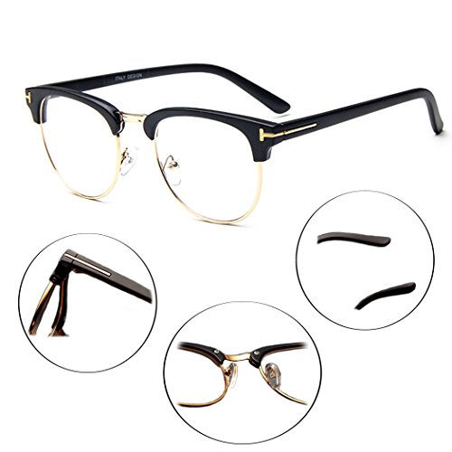 -. Feature : Lens width:46mm; Lens height: 54mm; Bridge:11mm;Temple:136mm / Durable prescription eyeglass frame with flexible temples / Clear lenses and you can replace them with your own prescription lenses / Free hard plastic protective case and cleaning cloth included / Vintage inspired classic half frame clear lens glasses for fashion use lenses