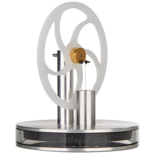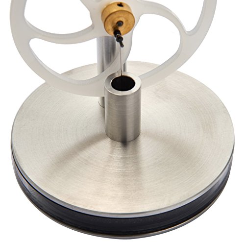 Attention: 1.If there is a little noisy, ONLY use a little graphite dry lube quieted it down nicely. 2.Prohibit to add oil to lubricate.Because the oil will mix with dust in the air, and become a oil-dirt, finally make the friction to be even bigger.The stirling engine can't run freely. What is the stirling engine? A Stirling engine is a heat engine that operates by cyclic compression and expansion of air or other gas, the working fluid, at different temperature levels such that there is a net conversion of heat energy to mechanical work.The engine is like a steam engine in that all of the engine's heat flows in and out through the engine wall. How it works? This is traditionally known as an external combustion engine in contrast to an internal combustion engine where the heat input is by combustion of a fuel within the body of the working fluid. Unlike the steam engine's use of water in both its liquid and gaseous phases as the working fluid,the Stirling engine encloses a fixed quantity of permanently gaseous fluid such as air or helium. As in all heat engines, the general cycle consists of compressing cool gas, heating the gas, expanding the hot gas, and finally cooling the gas before repeating the cycle. You can put the stirling motor toy in top of hot water to make the temperature difference. You also can put it in top of ICE to get the termperature difference, Just enjoy the toy! 0