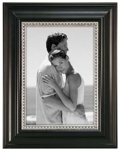 Malden International Designs Classic Mouldings Black & Silver Bead Picture Frame, 5x7 , Black