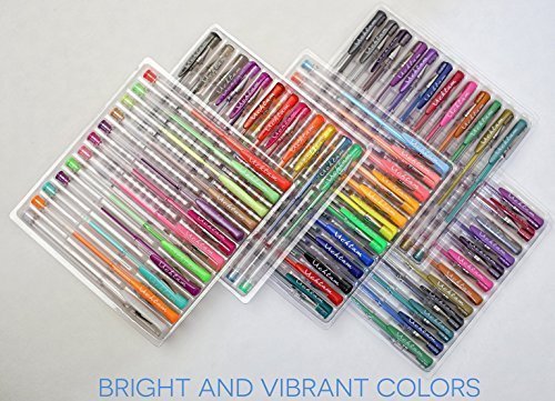 - NEW PACK ** 60 Unique Colors These premium gel pens pack contains 60 percent more ink compared to popular brands and is built with professional quality and has full spectrum of colors including 15 metallic (includes brown), 18 Glitter(All unique colors), 12 Neon , 11 Pastel , 4 Standard including black and white . Our long lasting , quick drying and free flowing ink and comfort grip provides smooth , without skip No bleeding and crisp coloring / writing experience . Great for Gifts ..