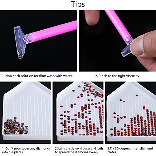 - Package Included: 10 Pieces 7 different types of diamond sticky pen, 7 pieces 5 different types plastic plates, 30 pieces of glue, 20 pieces sticker, 2 pieces plastic spoon, 2 pieces plastic tweezers, 3 pieces label and 1 diamond embroidery box