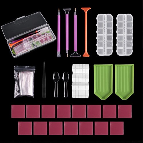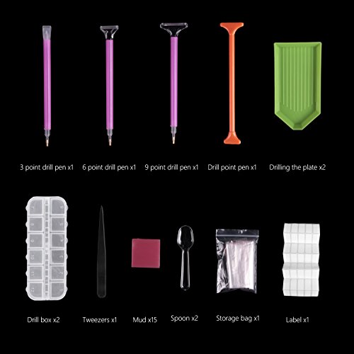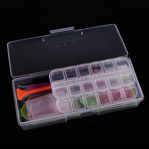 - Package Includes: Transparent plastic storage box*1pcs,transparent 12 compartments plastic box*2pcs,plastic plates*2pcs,diamond sticky pen*4pcs,clay*15 pcs,tweezers*1pcs,Transparent plastic spoon*2pcs,label*1pcs,Transparent bags*20pcs