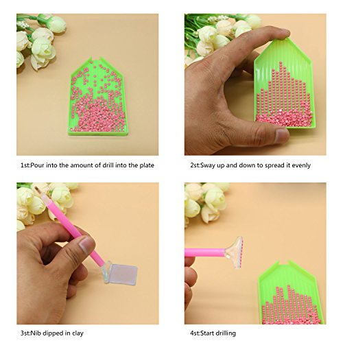 - Design of diamond sticky pens: 4 different designs of sticky pens, they can sticky 3 pieces diamonds,6 pieces diamonds and 9 pieces diamonds at the same time respectively, the speed is 3 to 9 times faster than ordinary diamonds sticky pen