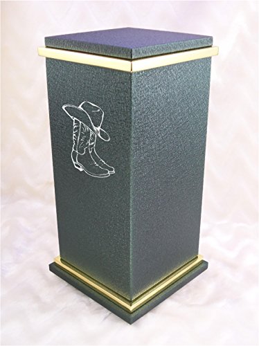 PERSONALIZED Custom Engraved Cowboy Boots Cremation Urn Vault by Amaranthine Urns, made in the USA, Eaton RG Polished Gold (up to 200 lbs living weight) (Slate Grey)