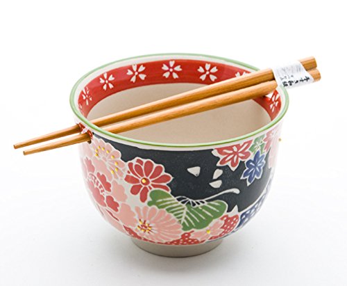 SIZE AND WHAT'S INCLUDED - This set of bowl and chopsticks measures approximately 5 inch diameter and 4 inch tall. The matching chopsticks are approximately 9 inches long