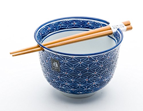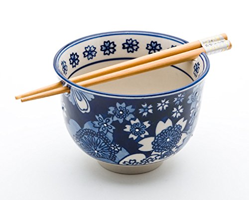 Beautiful set of Japanese ramen/udon bowl with chopsticks set