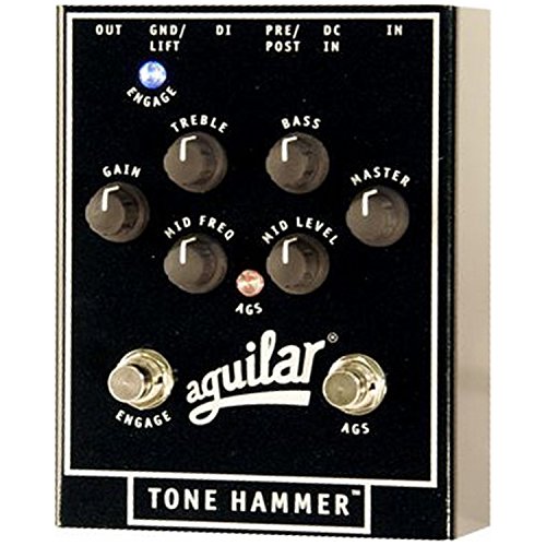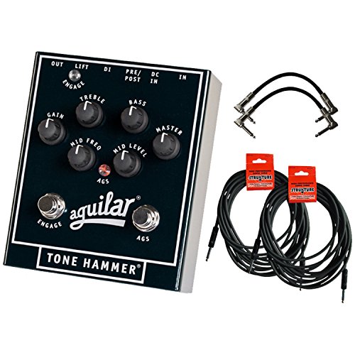 Aguilar Tone Hammer 3-Band Preamp/DI, Stomp Box, Overdrive Bass Pedal w/ 4 Cables