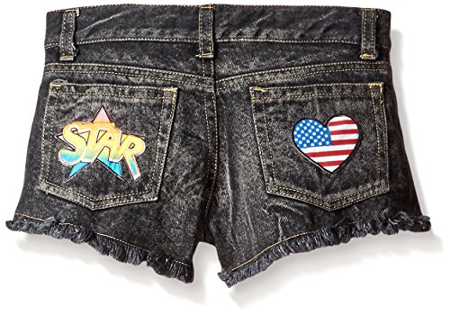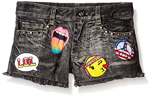 Denim patch shorts with patches all over that is a soft denim fabric.