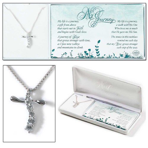 -. Binding : Jewelry -. Brand : Dicksons Gifts -. Color : Silver -. Department : womens -. EAN : 0714611137764 -. Feature : Unique cross has journey necklace design with sparkling cubic zirconia stones / Silver plated pendant is 5/8 inch long and chain is 18 inches long / Wonderful gift for a birthday, graduation, confirmation, or any occasion / Beautifully presented in deluxe gift box with the p My Journey, celebrating our walk with Jesus -. Label : Dicksons -. Manufacturer : Dicksons -. Model : 73-1571P -. MPN : 73-1571P -. PackageQuantity : 1 -. PartNumber : 73-1571P -. ProductGroup : Jewelry -. ProductTypeName : FASHIONNECKLACEBRACELETANKLET -. Publisher : Dicksons -. Size : 18" Chain -. Studio : Dicksons -. Title : My Journey Cross Necklace -. UPC : 714611137764