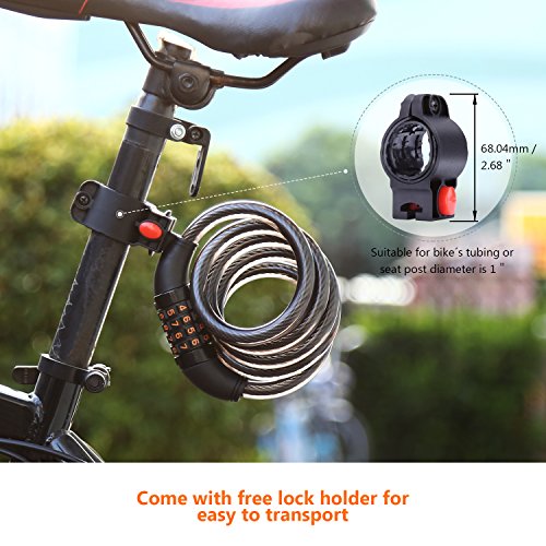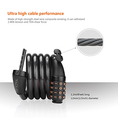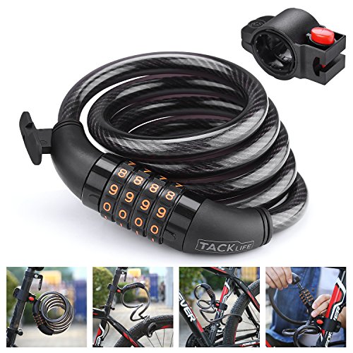 Bike Lock, Tacklife Bike Lock Cable, 4 Ft HCL1C Self Coiling Resettable Combination, 4-dial Combination Locks with Complimentary Mounting Bracket,1/2Inch For Bike/Bicycle