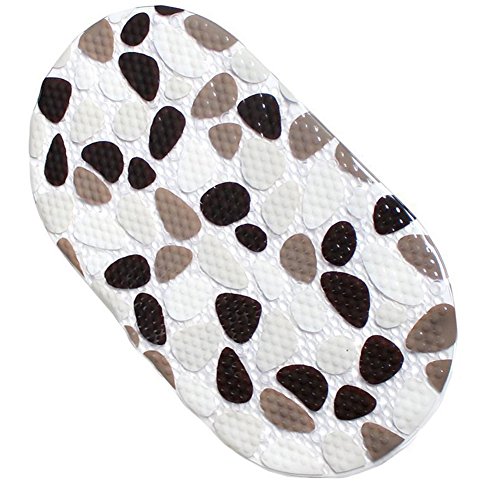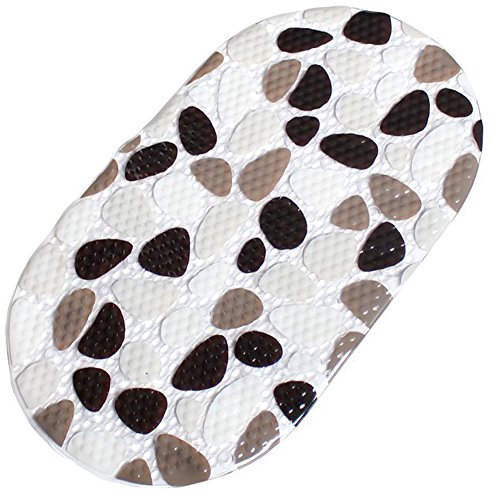 Pebble Bath Shower Mat Non Slip Mold Resistant 14’’ x 27’’ With Suctions, Oval Long Bath Mat For Shower Bathtub, Anti Bacterial Machine Washable (Pebble)