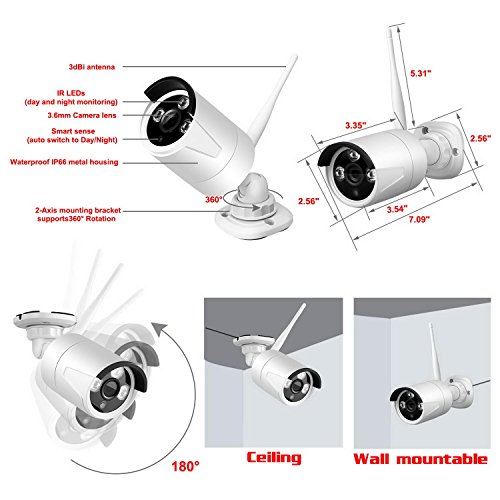 High Definition Video : 8 Channel CCTV camera system cover wider field than 4ch kits,keep on eye on every corner around your home or business. 1280 x 960p 1.3 Megapixel equals 720P HD + 307,200 pixels. Day and night monitoring: 3 Strong IR Leds offer crystal clear night vision distance up to 100ft. Professional home security system: Waterproof IP66 design for indoor and outdoor surveillance