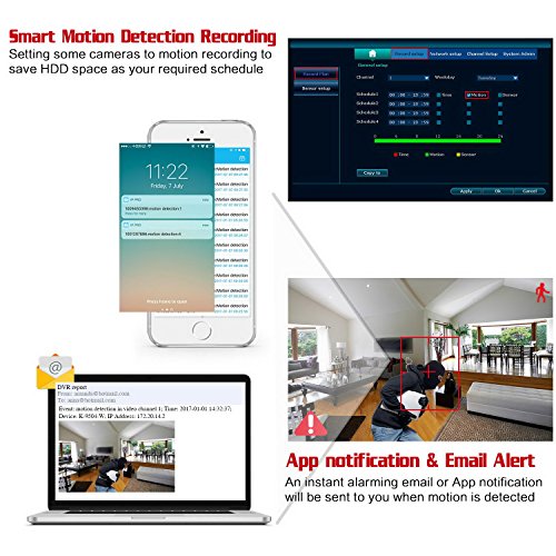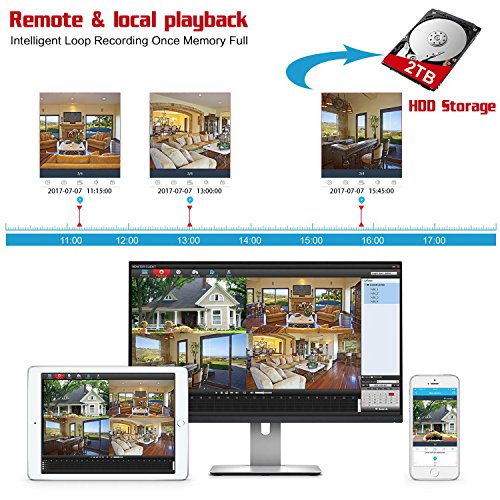 Smart recording mode: Pre-installed 2TB HDD supports footage recording monthly. Motion detection option allows you to record only when motion is detected to save the hard drive space without missing any important events. Two USB ports give you the option to backup video footage or upgrade system firmware