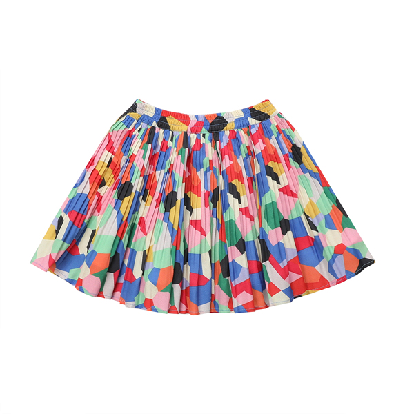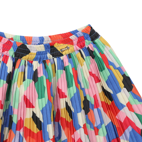 비비드한 컬러감의 기하학무늬가 세련된 이미지 연출을 용이하게 하며 기본티셔츠나 블라우스와 코디가 용이합니다.