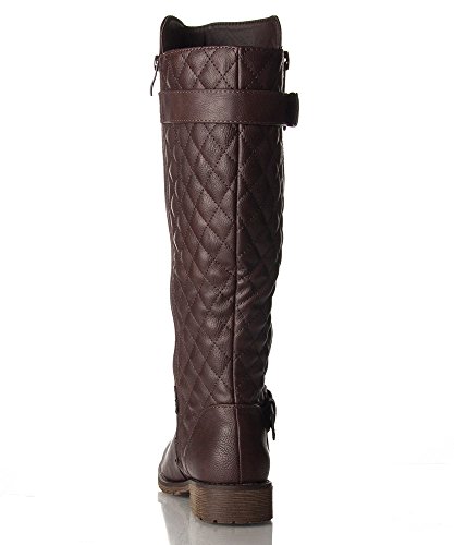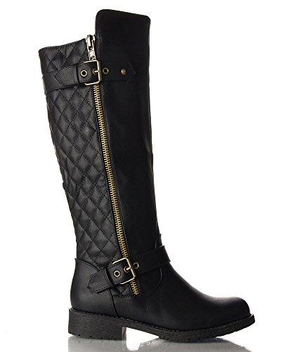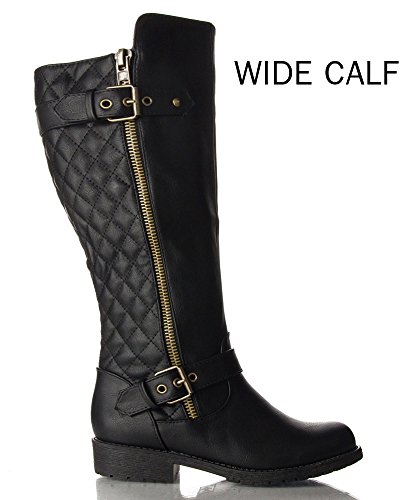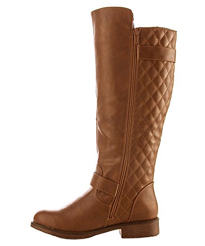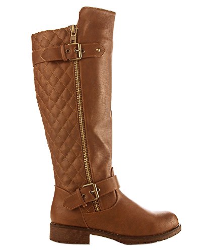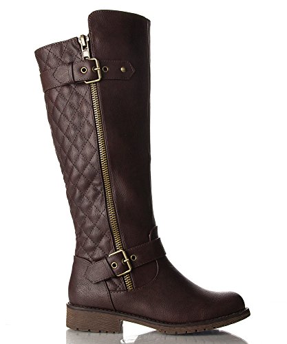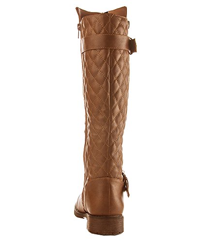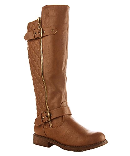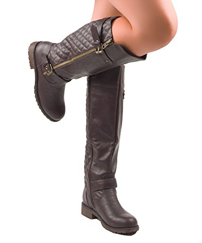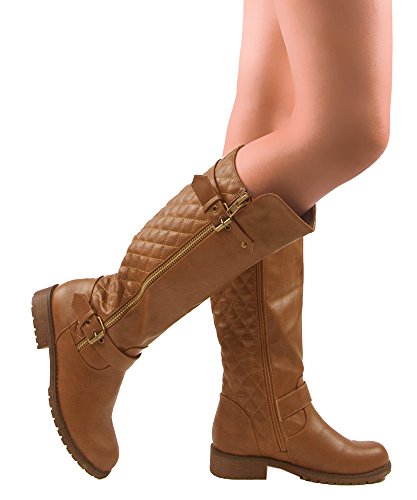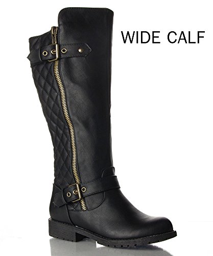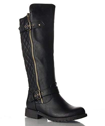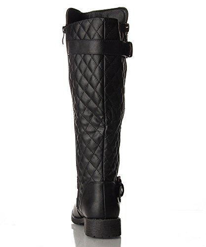 | (Room Of Fashion)/Women's/Boots/DIRECT FROM USA/RF Women's Vivienne Quilted Leatherette Buckle Decor Round Toe Motorcycle Riding Boots - Hidden... |
