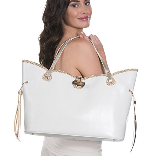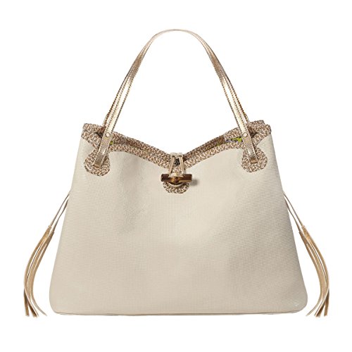 Eric Javits Luxury Fashion Designer Women's Handbag - Tuti - White/Gold
