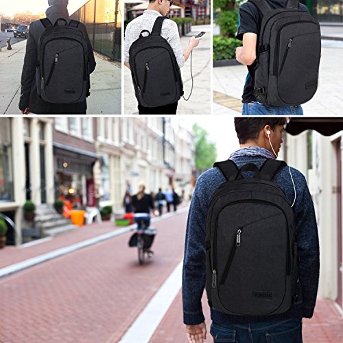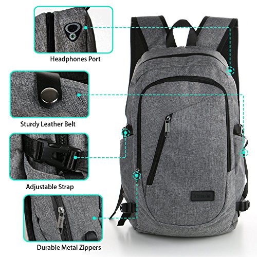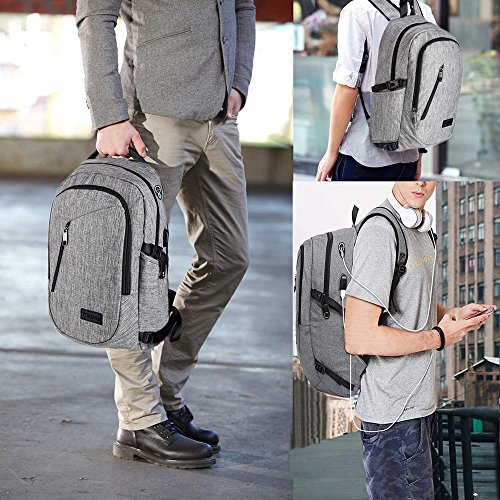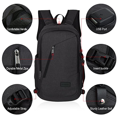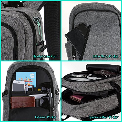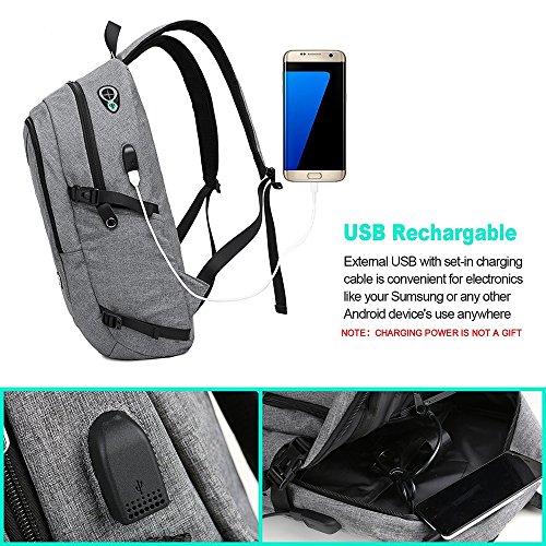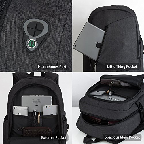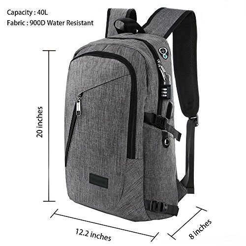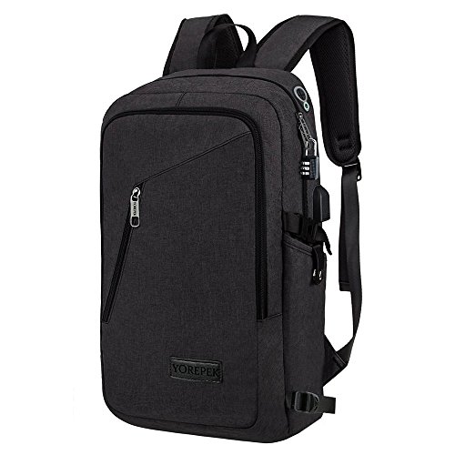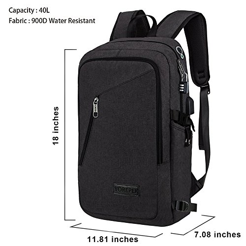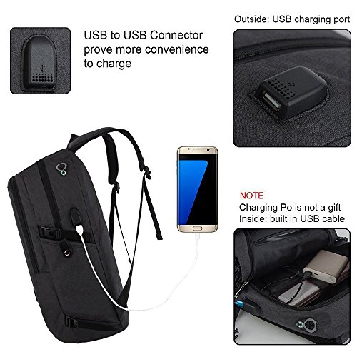 Features: --Material: Heavy duty nylon fabric --Capacity: Soft lined laptop sleeve accommodates laptops less than 17 inches with enough space --Classified:10 independent Compartments make your things like Laptop, Phone, passport, pen, keys, wallet, watch, charger baby, Mp3, notebooks, clothes, umbrella, and bottle well classified --Safety:Anti-theft Lock protects your wallet and other valuables inside from thief --Straps:"S" Shaped Thicken Shoulder Straps combined with Padded Back Cushion brings you a great comfort --More Functions:Featuring EARPHONE JERK gives convenient access to earphone usage. External USB with built-in charging cable offers a convenient charging of your electronic device anywhere --Application:Perfect for business trips or weekend getaways or for simply heading to the office or school and home again