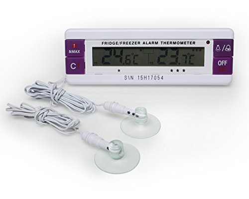 - Features dual display measuring refrigerator and freezer temperatures simultaneously