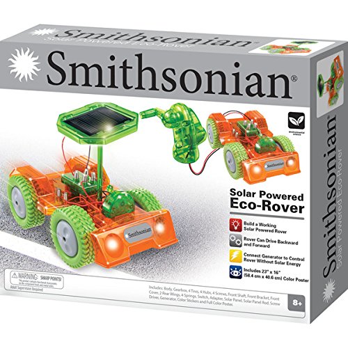 -. Binding : Toy -. Brand : Smithsonian -. Color : Multi -. EAN : 0634154400135 -. Feature : Material : Plastic / Age: 8 & Up / Color : Multi / Dimensions 15 inches long x 12 inches wide x 3 inches high -. IsAdultProduct : 0 -. Label : **Smithsonian** -. Manufacturer : **Smithsonian** -. ProductGroup : Toy -. ProductTypeName : TOYS_AND_GAMES -. Publisher : **Smithsonian** -. Studio : **Smithsonian** -. Title : Smithsonian Eco Rover Building Set Connect Generator To Control Rover Without Solar Energy -. UPC : 634154400135