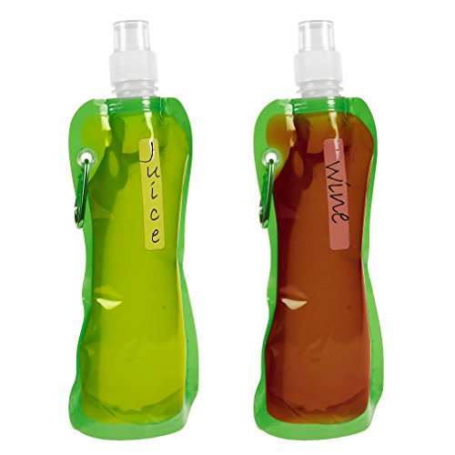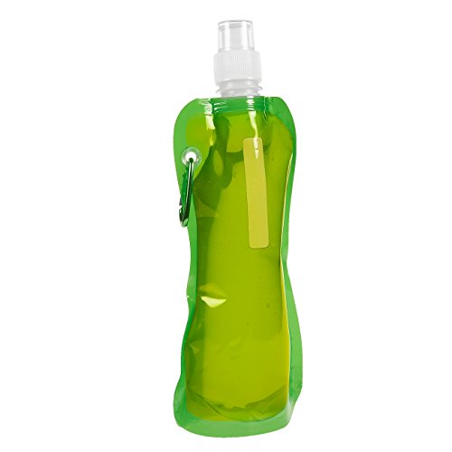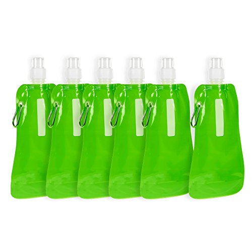 Collapsible Water Bottle - 6-Pack 16 oz Foldable BPA Free Canteen Drinking Bottles with Carabiner for Travel, Green