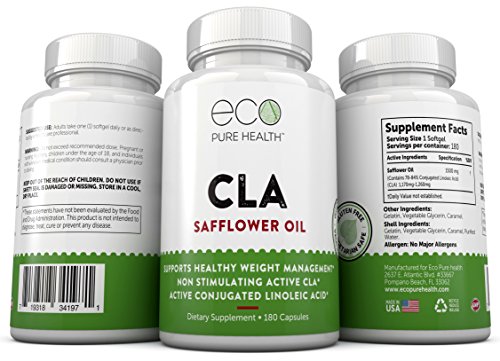 -. Title : CLA Safflower Oil Supplement, Supports Healthy Weight Management, Non-stimulating, Active Conjugated Linoleic Acid, 180 Capsules by Eco Pure Health