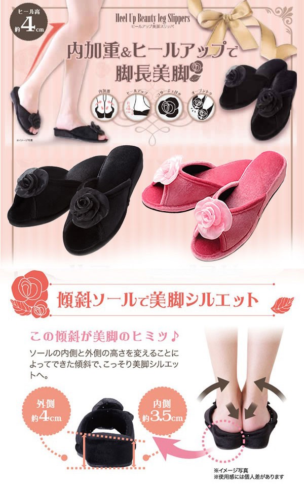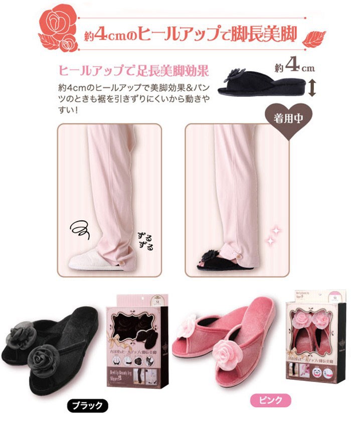 ★★ヒールアップ美脚スリッパ ブラック/ピンク/ M/L 【材質】生地:ポリエステル100% 中材:EVA樹脂 底部:ポリウレタン 【適応サイズ】M:22.5~23.5cm、 L:24.0~25.0cm 【商品サイズ】約D1.4xW60xH9.4cm 【原産国】MADE IN CHINA