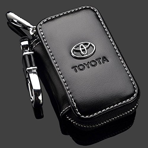 Toyota Black Premium Leather Car Key Chain Coin Holder Zipper Case Remote Wallet Bag