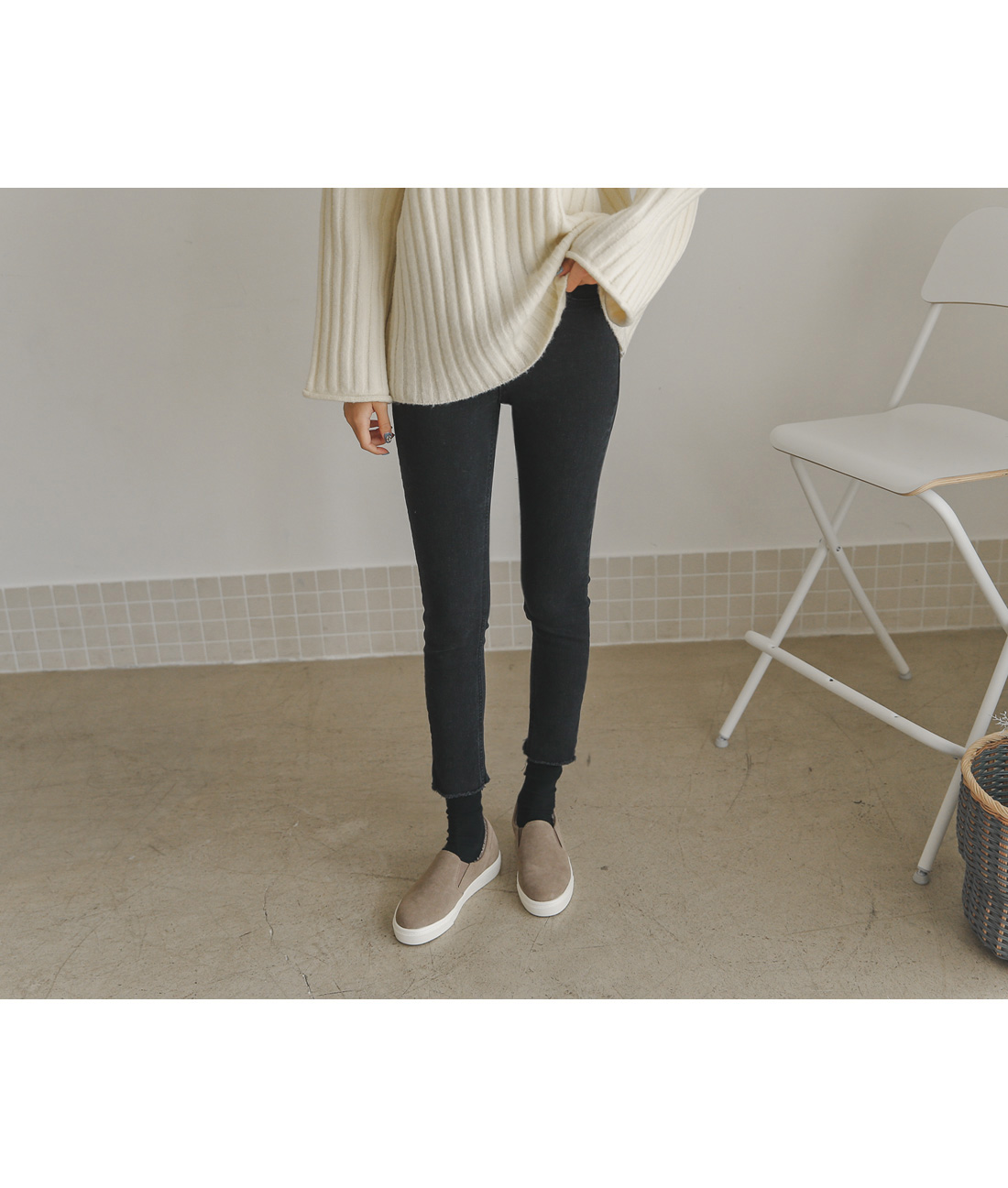 허벅지 중간까지 내려오는 길이감으로 체형커버는 물론