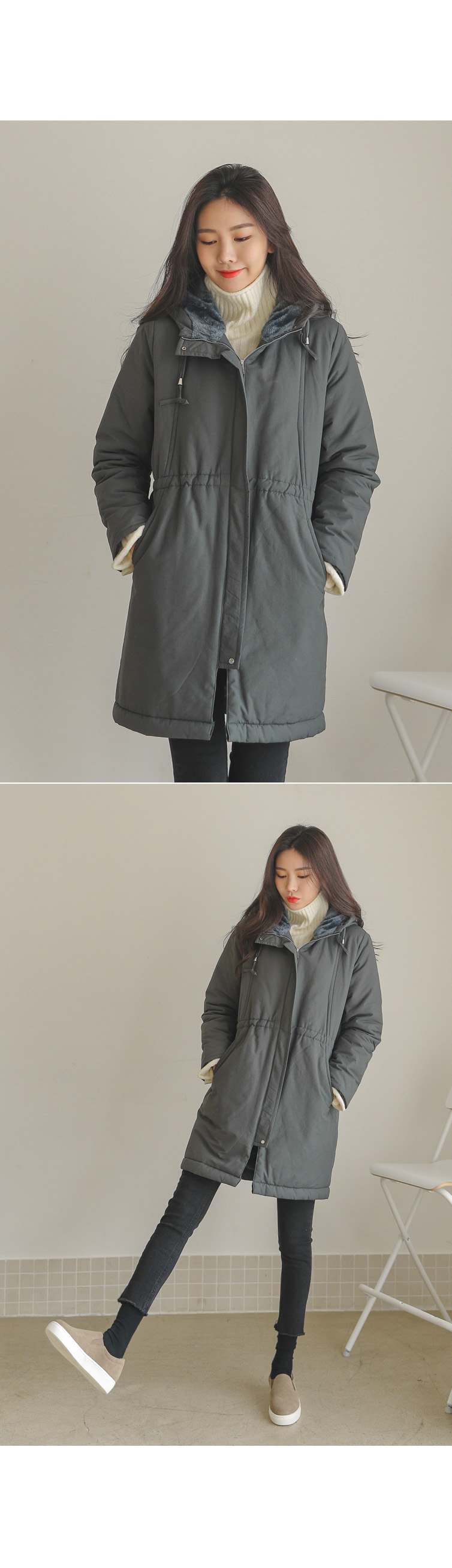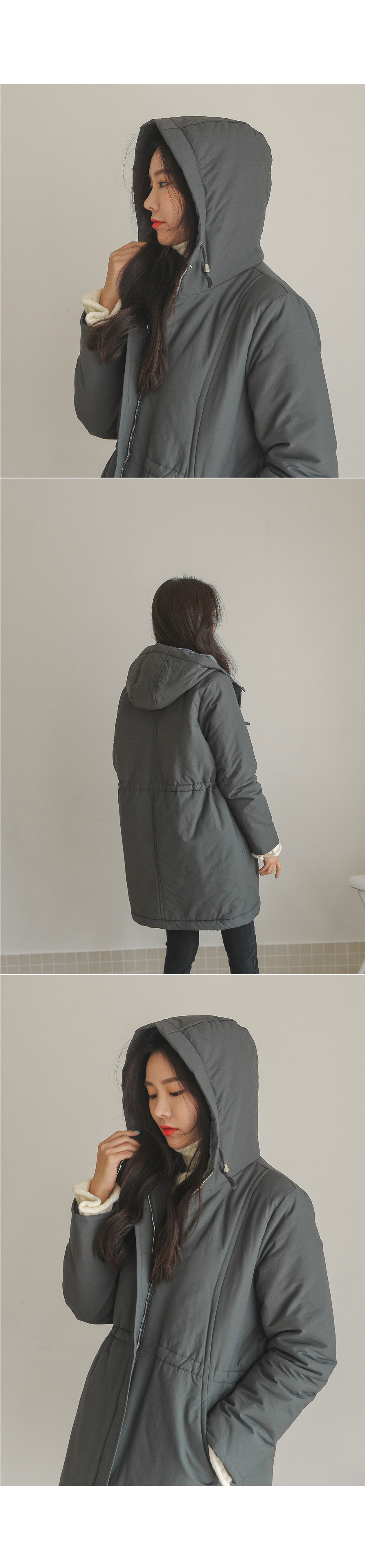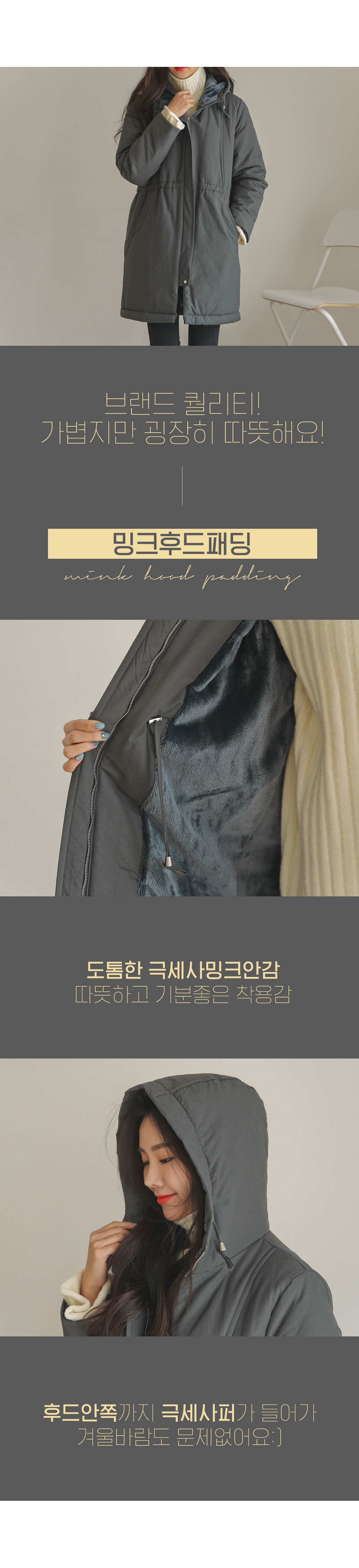 후드만 써주면 따뜻하게 입을 수 있어 실용만점 밍크후드패딩!