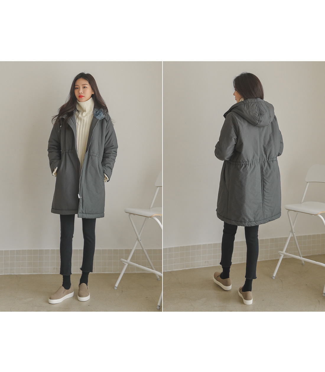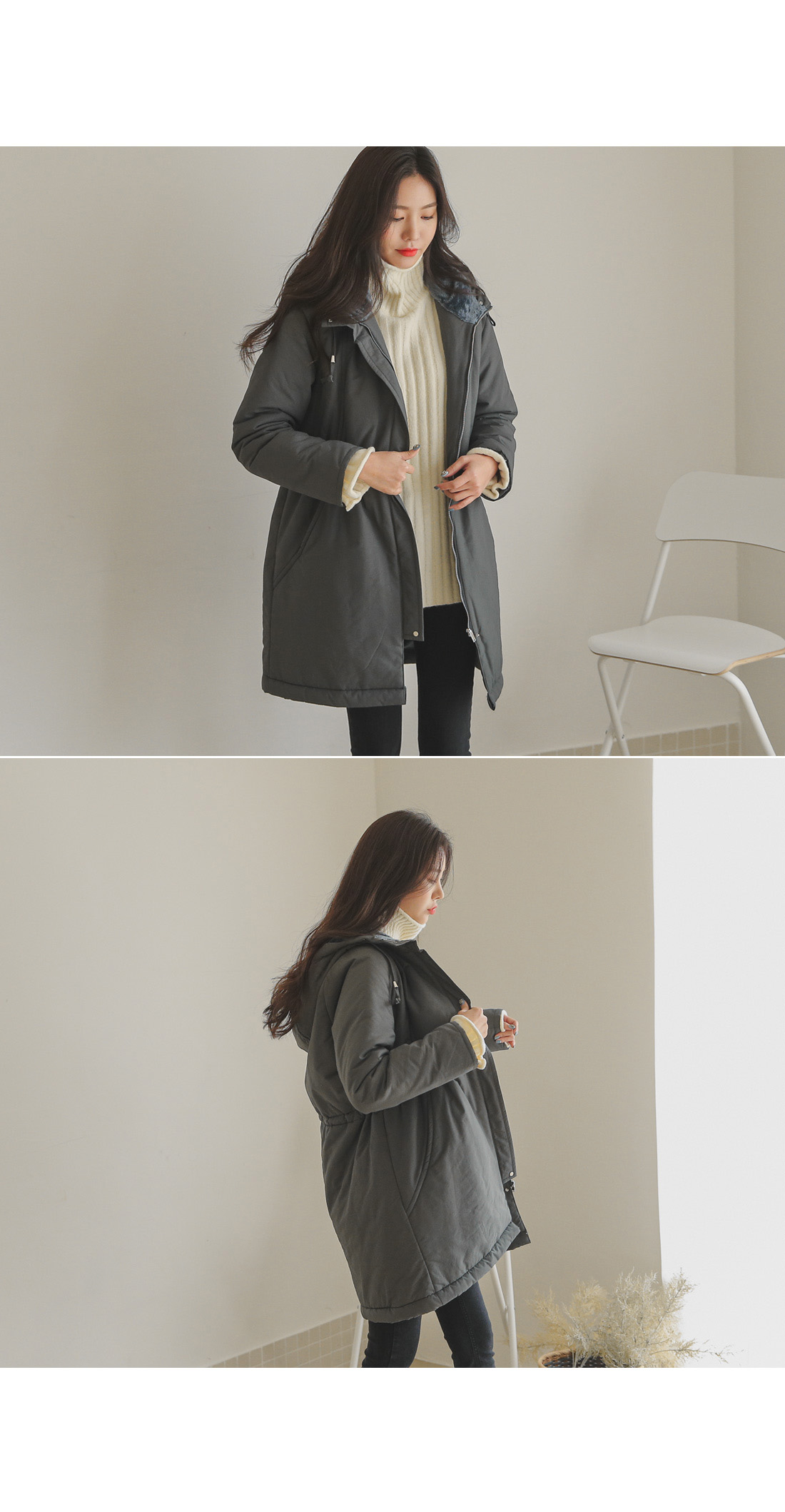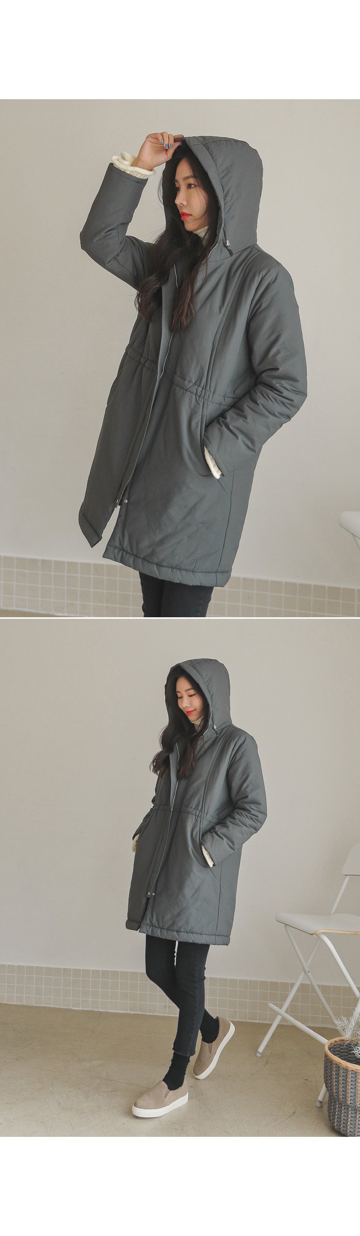 후드만 써주면 따뜻하게 입을 수 있어 실용만점 밍크후드패딩!