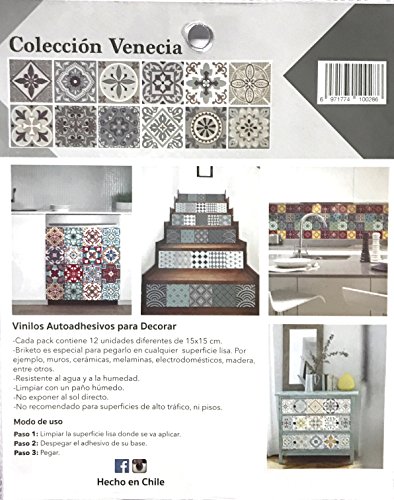 VENECIA Decorative Tile Stickers Set 12 units 6x6 inches. Peel & Stick Vinyl Tiles. Backsplash. Home Decor. Furniture Decor.