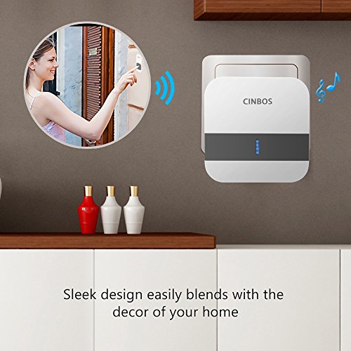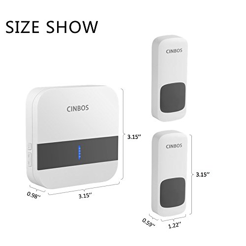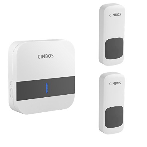 Cinbos Model B13 Wireless Doorbell, Waterproof Chime Kit, 1000 Feet Operating, LED Indicator, 52 Chimes, 4 Level Volume, 1 Plugin No Battery Required Receiver and 2 Remote Push Button Transmitter