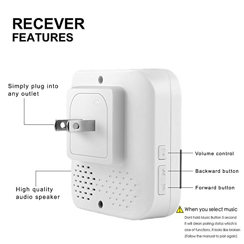 - Sound Volume & tune: Vol can be set to 25db(no noisy class)-110db(loudest). You can make it be heard just at 2 meter when set to min-vol,or be heard pass through 3 floor when set to max-vol. It has 52 Chimes, include common ringtones or pleasant tunes.