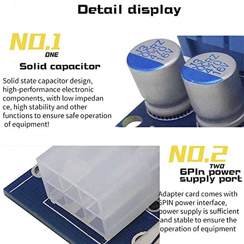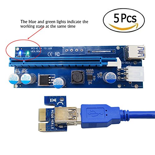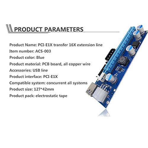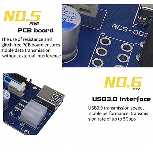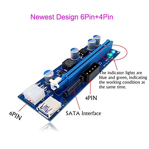 Studio : CNIKESIN Publisher : CNIKESIN Binding : Electronics Product Description Features: ★100% Brand new and high quality. ★Using 60cm USB 3.0 cable as extender cable ,premium quality and super speed. ★With 3x FP solid capacitors, making graphics power supply more stable and secure. ★With SATA Male to 4 pin 6Pin power cable,more powerful and reduce the burden of the motherboard. ★Gold plated contacts for better connectivity and long life . ★Compatible with 1x,4x,8x,16x PCI-E slot of the motherboard. ★With side clip to fasten other card. ★No driver needed. ★Dedicated for bit coin mining.