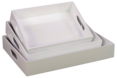 Plutus Brands Pretty White Set of Three White Wooden Trays